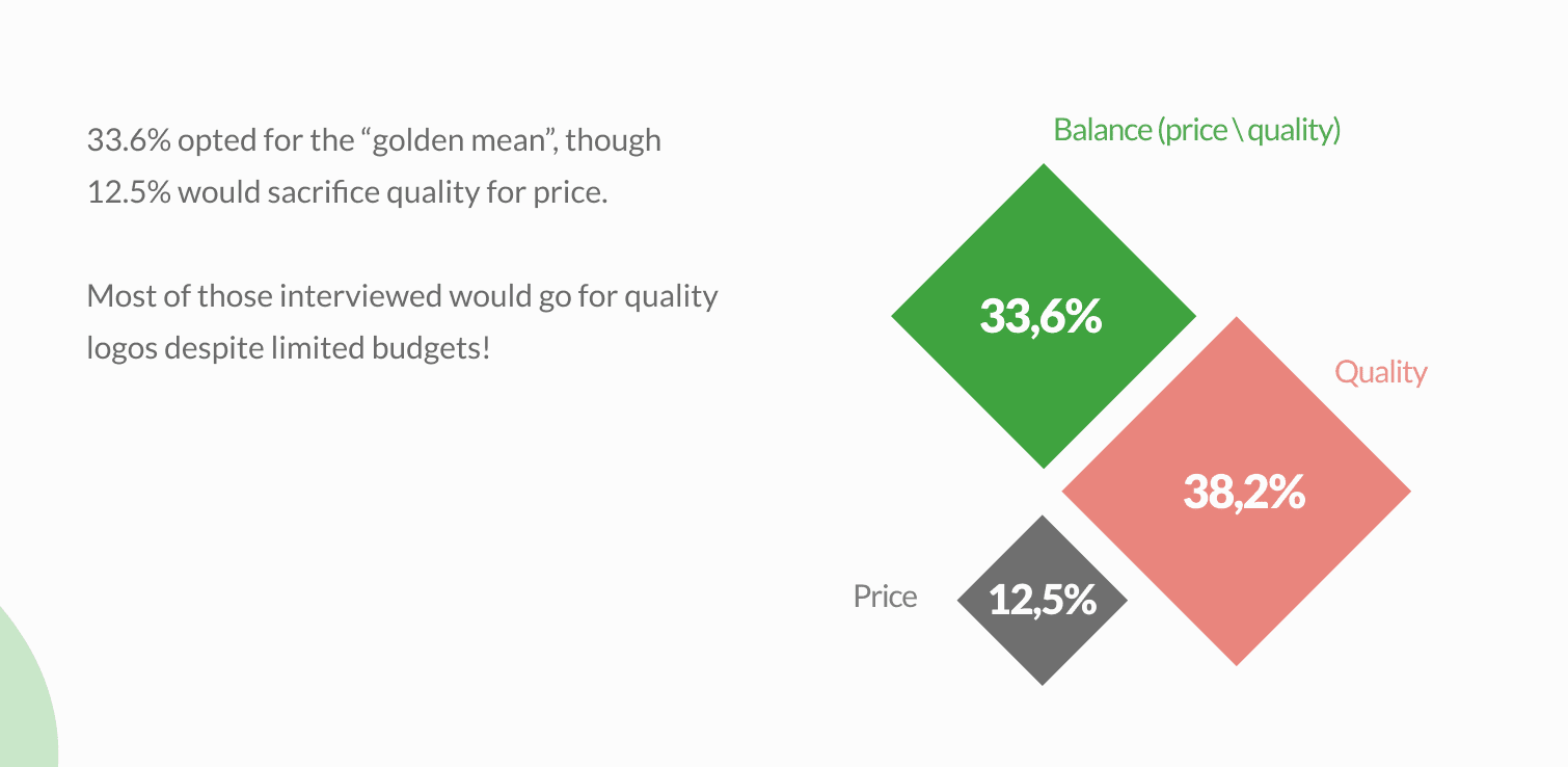 The poll revealed that 44.6% of startupers were ready to wait up to one week to get the logo. 25% of those surveyed are willing to wait up to one month. Keep in mind that these are the standard times if you’re using the services of freelance designers and design agencies.
