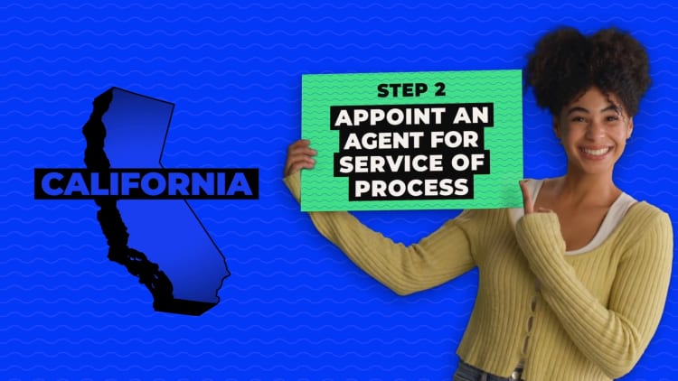 The next step is to appoint a California agent for service of process. In other states, this is more commonly referred to as a registered agent. The agent for service of process is a person or business entity assigned to receive legal notices (such as subpoenas) and official correspondence on behalf of your business.